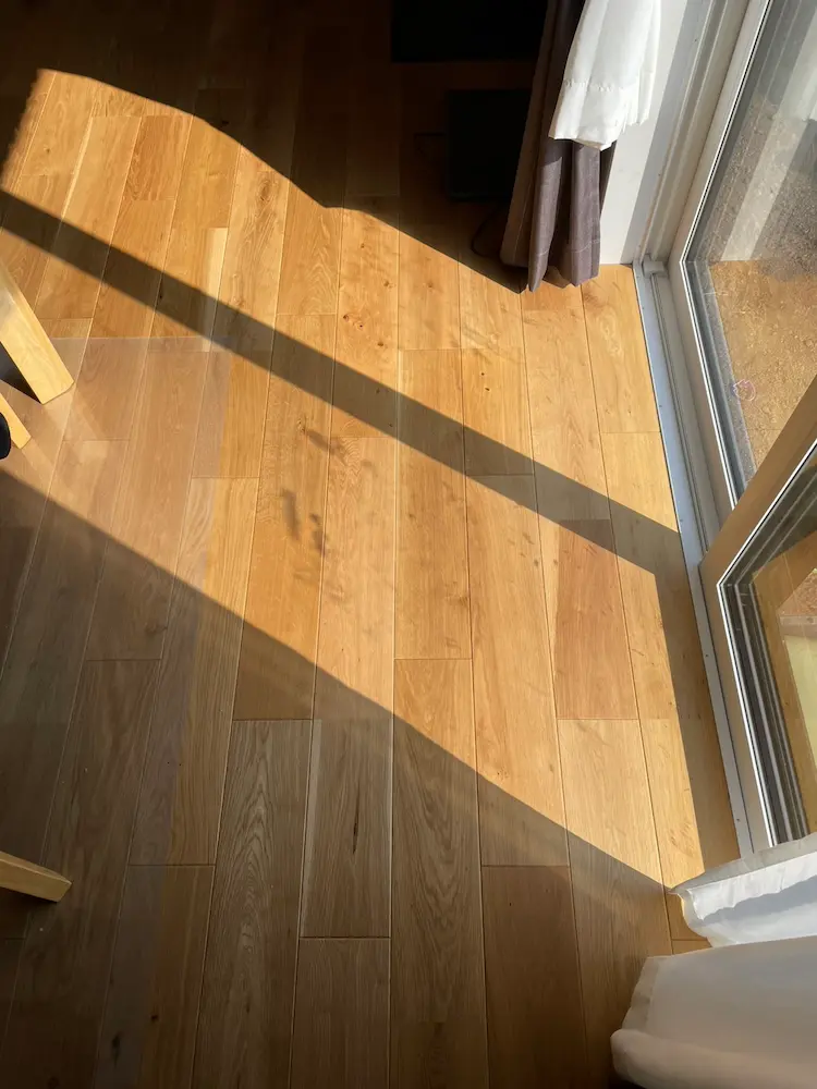 窓ガラスから約170cmも太陽光が入り込んでいました。触るとポカポカ。