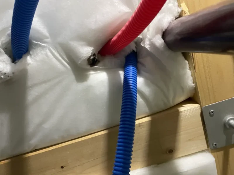 キッチンや脱衣場へ延びるパイプ周りが断熱材にやや隙間を発見。